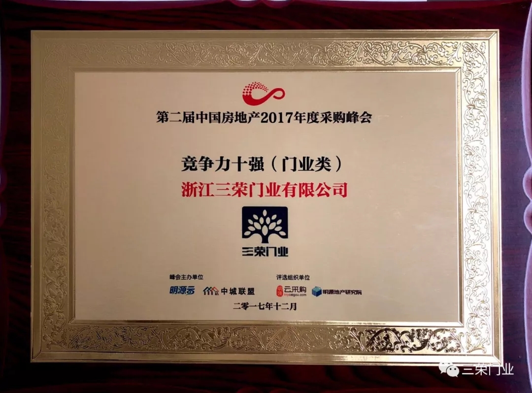 这不仅是对三荣门业实力的表证,亦是行业对三荣产品工艺及生产实力的认证。