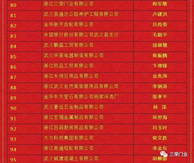 祝贺三荣门业荣获武义纳税百强、诚信守法民营企业和诚信示范企业称号
